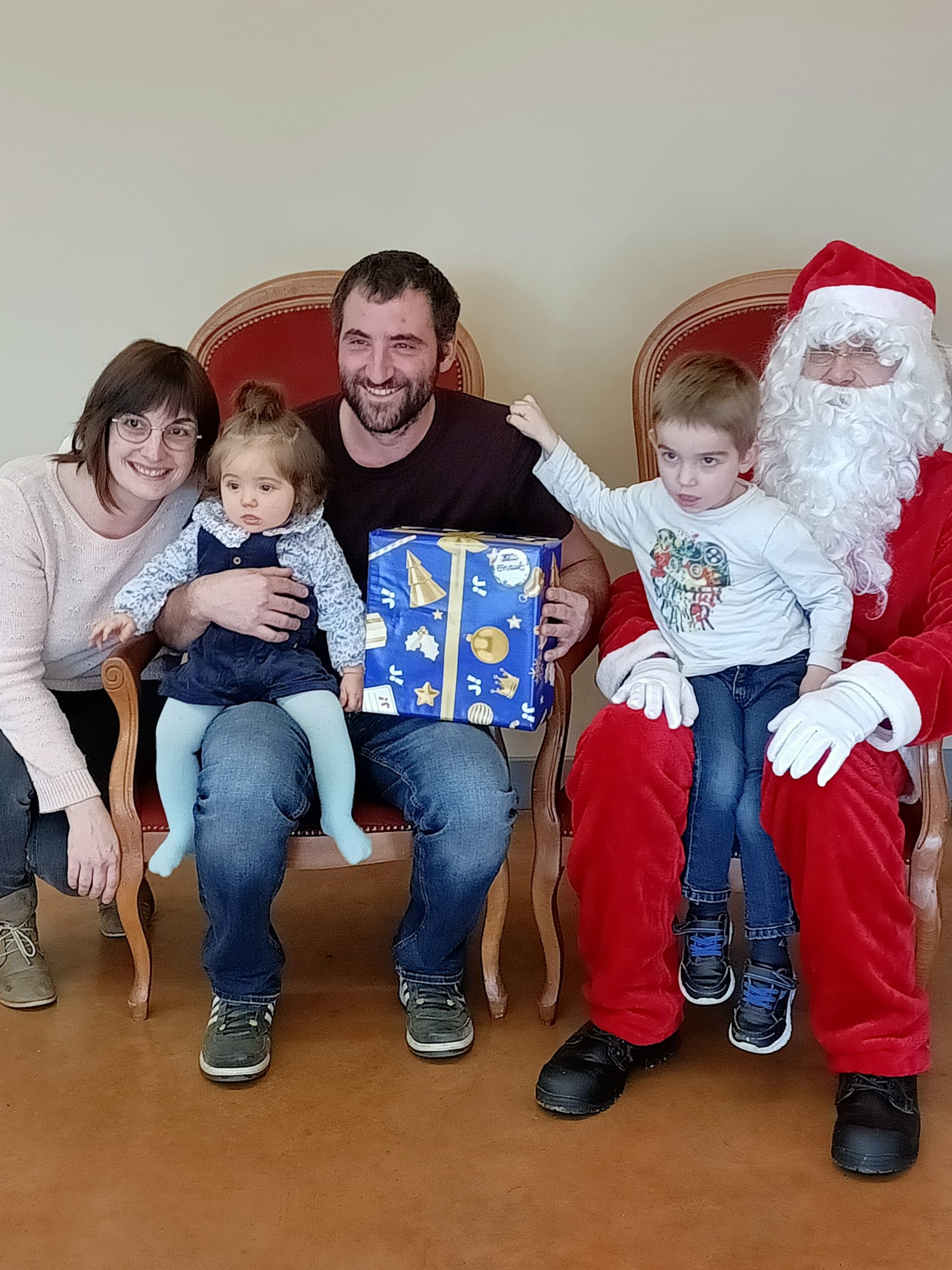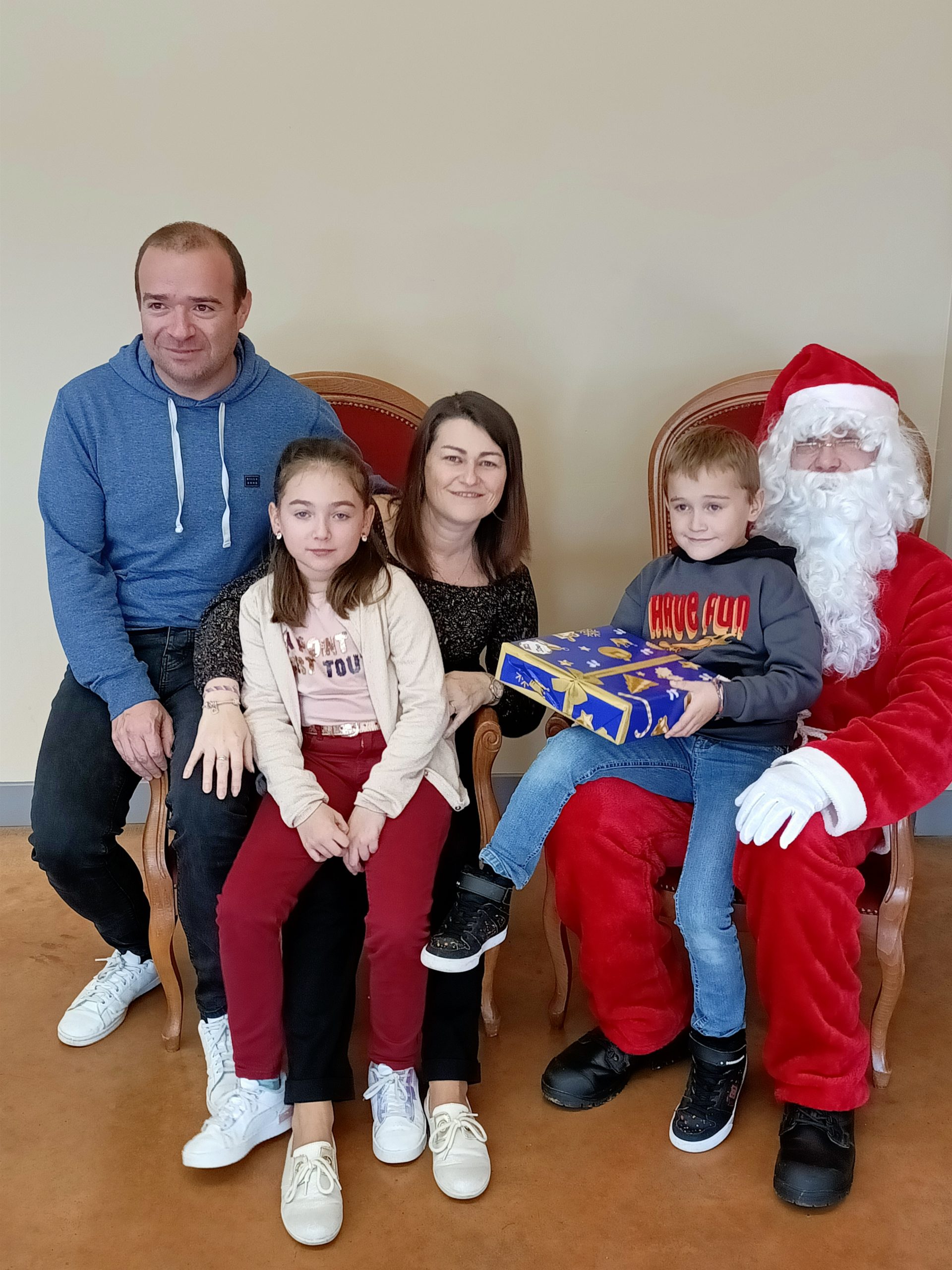 Nous avons commencé par la traditionnelle photo avec le Père Noël, lors de sa remise du cadeau aux 40 enfants âgés de 0 à 6 ans.
